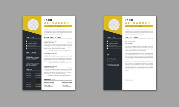 Resume Layout with Black and yellow Sidebar CV Template