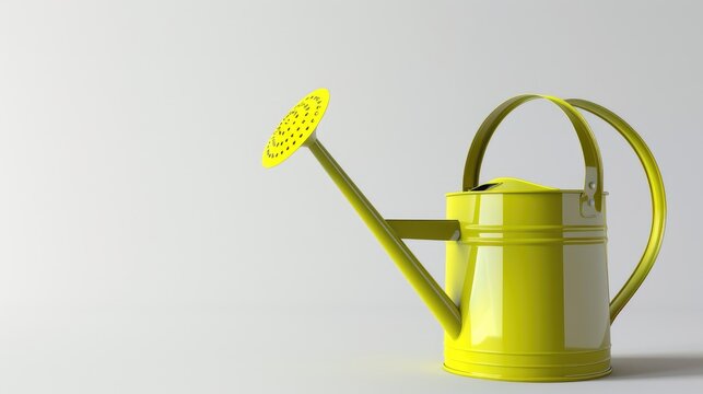 Pouring water from yellow watering can in front of nice green foliage. 120 fps slow-motion 4K.