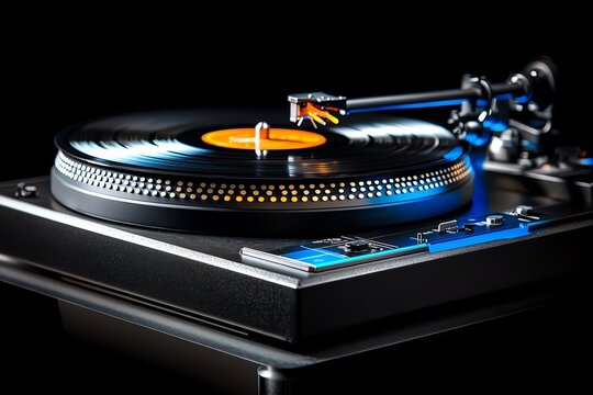 Hyper-realistic close-up of a vinyl record spinning on a turntable, with intricate details of the grooves and needle, symbolizing the music culture of yesterday