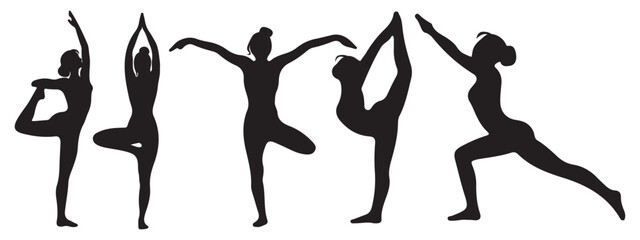 yoga pose girl silhouette set vector illustration