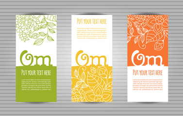 Om mantra lettering with floral pattern long flyer. Yoga and meditation studio long flyer or trifold templates.
