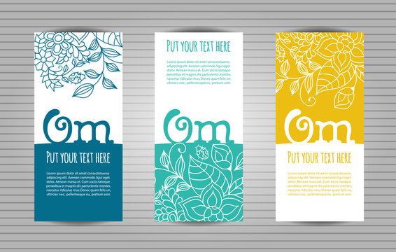 Om mantra lettering with floral pattern long flyer. Yoga and meditation studio long flyer or trifold templates.