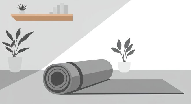 Unrolled yoga mat with leaf logo icon for fitness and wellness