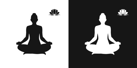 Lotus position. Yogi, meditating girl vector sign