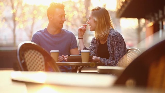 Couple in sidewalk cafe