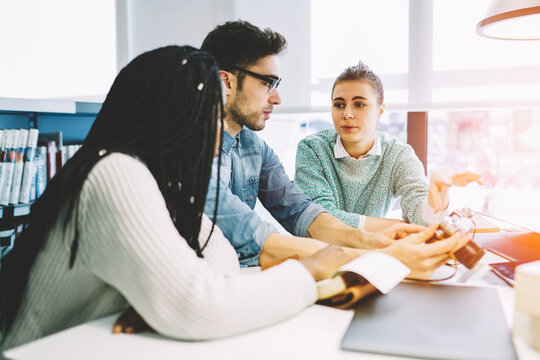 Young Photographer Demonstrates Camera Results to Two clients in Bright Indoor Setting