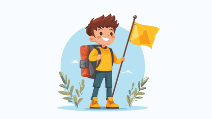 Young Boy Ready for Adventure with Flag Flat Vector Illustration