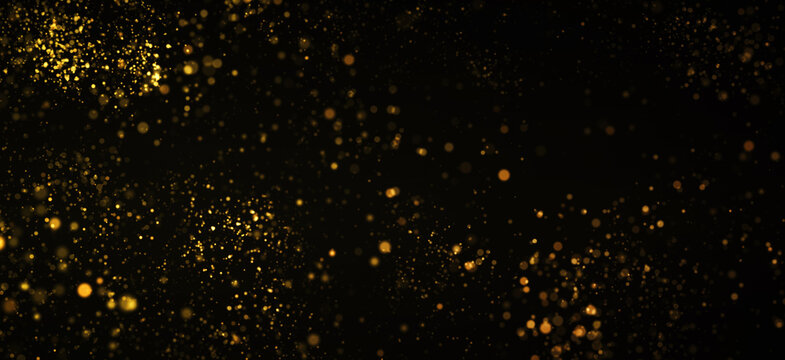 金色のキラキラ、パーティクル、黒背景