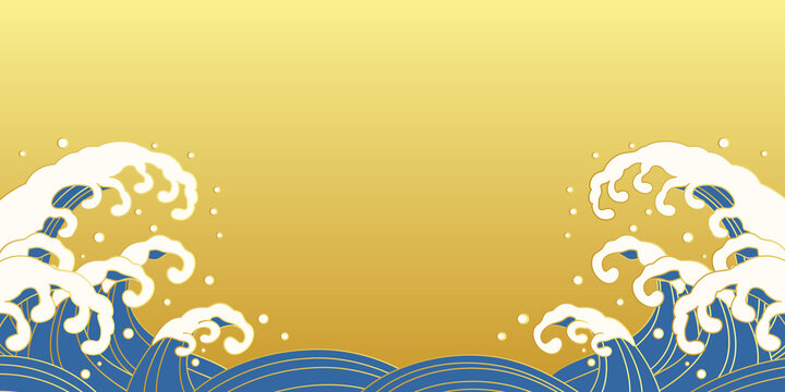 波とゴールド背景のベクターイラスト
