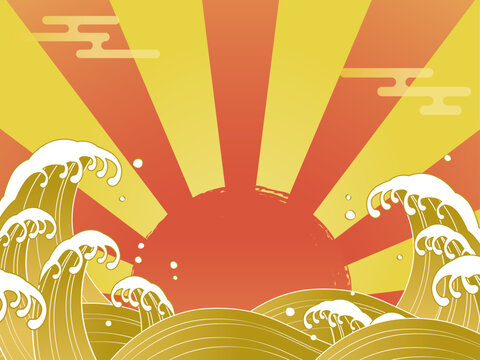 金の波と日の出の背景素材_ベクターイラスト