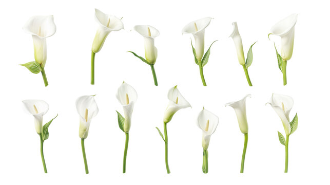 Set of hand drawing soft pink-beige zantedeschia on white background. Decorative exotic element for invitations cards, textile, print and design.