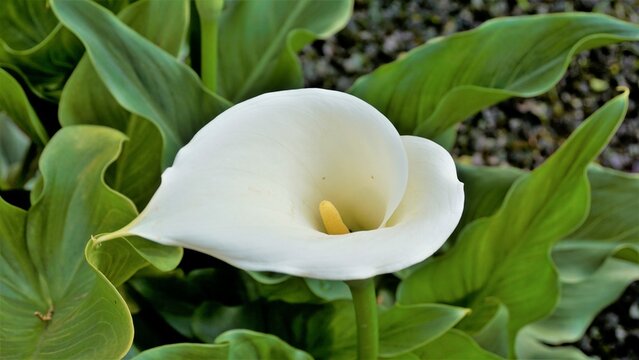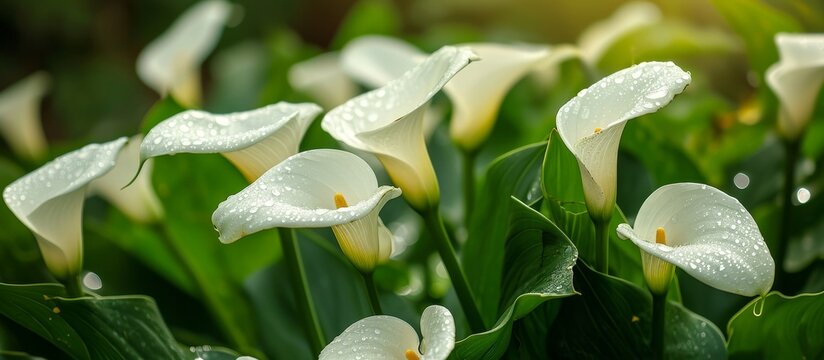 Beautiful white flowers of Zantedeschia aethiopica also known as calla lily