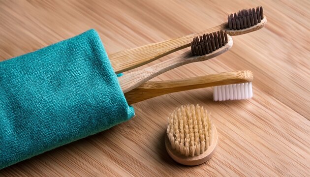 eco friendly bamboo toothbrush with teal cloth case