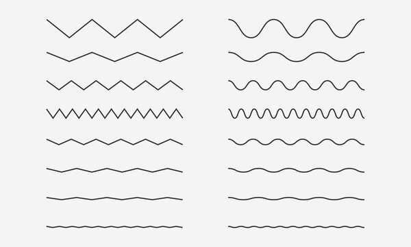 Wave line set. Sea wave pattern. Wave ornament decorations. Wavy zig zag lines. Wave thin line background. Blue water waves illustration.