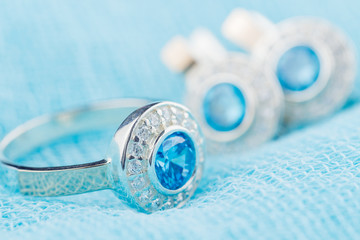 Silver ring with zircon and blue gemstone