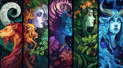 Craft a series of illustrations highlighting the characteristics of each zodiac sign,