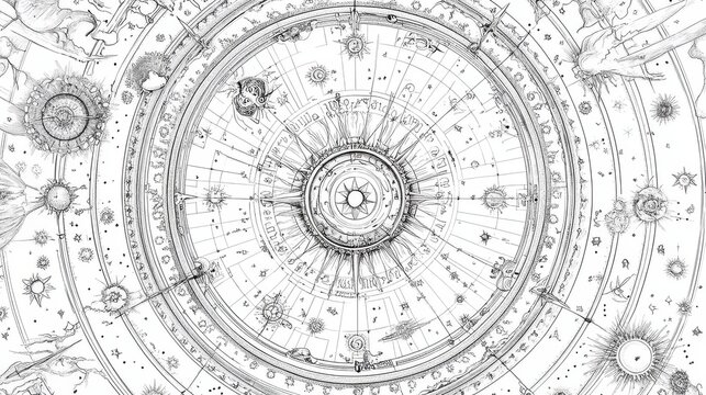 Mystical zodiac wheel coloring book, Mystical Zodiac Wheel with Astrological Symbols