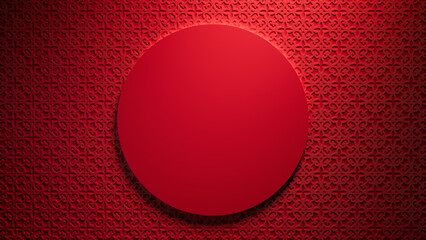 Red Asian Design Template featuring Circle Frame with copy-space. Lunar New Year Background with 3D Pattern.