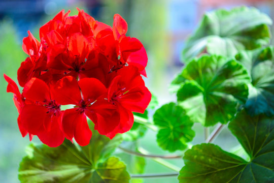 Pelargonium flowers closeup. Horseshue pelargonium or Pelargonium zonale.