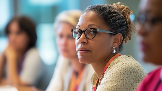 Business professionals connecting at conference workshop