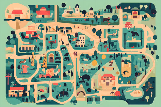 A map of the zoo with all its animals Zoo Map and Adventure Concept