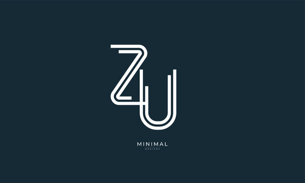 Creative Minimalist Letter ZU Logo Design , Minimal ZU Monogram