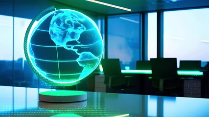 3d Globe With Digital Data In Modern Office Environment Videos