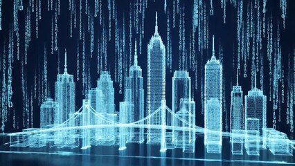 Abstract Binary Code And Skyscrapers In Data Visualization Videos
