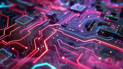 Abstract Circuit Board Overlay On Gradient Background Videos