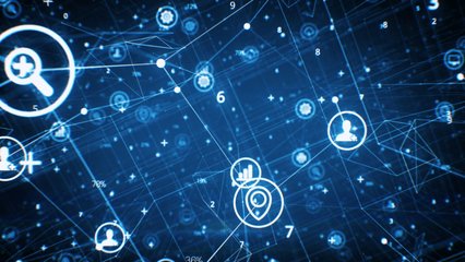 Abstract Data Network With Media Icons And Digital Interface Videos