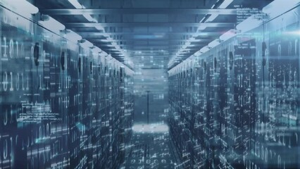 Abstract Data Processing Animation Over Server Room Videos