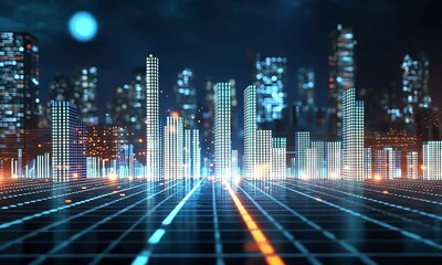 Abstract Data Visualization Overlaying Urban Skyline Videos