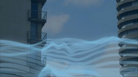 Abstract Data Wave Over Urban Cityscape Videos