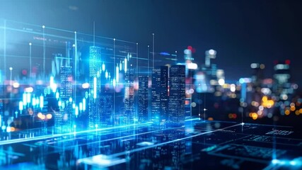 Abstract Digital Data Interface With Financial Graphics Overlay Videos