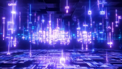 Abstract Digital Data Network In Purple Light Videos