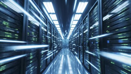 Abstract Digital Data Processing In Server Room Visualization Videos