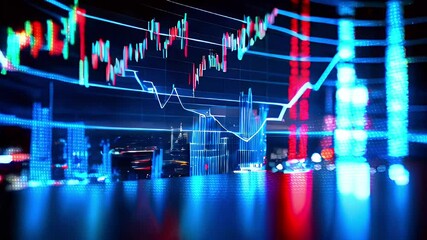 Abstract Digital Financial Chart With Red Wave Patterns Videos