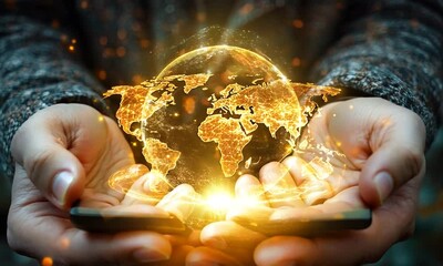 Abstract Digital Interface With Artistic Elements And Global Network Videos