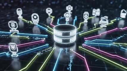Abstract Digital Interface With Data And Surveillance Camera Videos