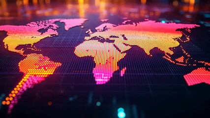 Abstract Digital Interface With World Map And Data Analysis Graphics Videos