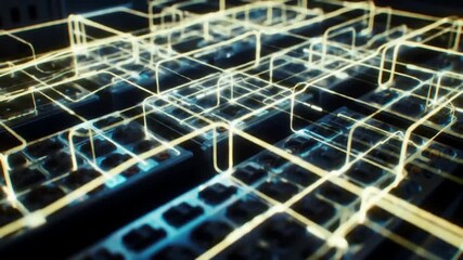 Abstract Digital Lines Over Grid In Data Processing Animation Videos