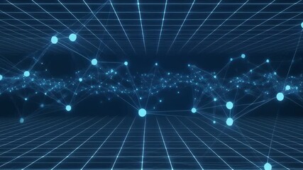 Abstract Digital Network With Virtual Data Overlaid On Clouds Videos