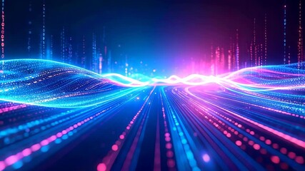 Abstract Digital Rain With Network Connection Lines Videos
