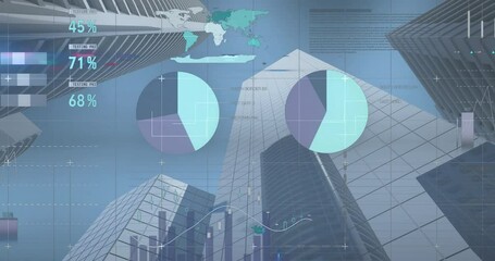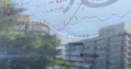 Abstract Financial Data Network Over Cityscape Videos