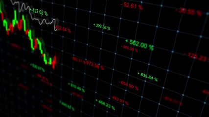 Abstract Financial Graphs And Statistics With Red Downward Trend Line Videos