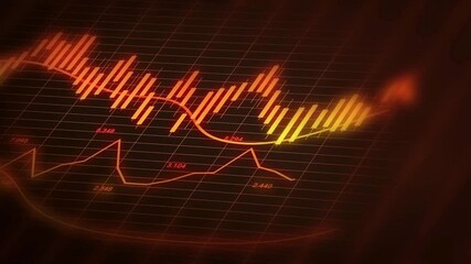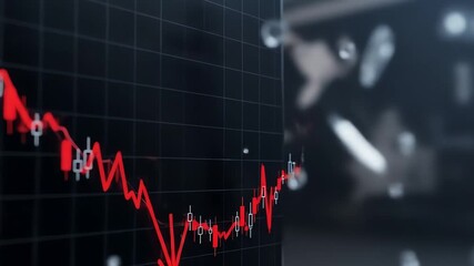 Abstract Financial Graphs And Statistics With Red Downward Trend Line Videos