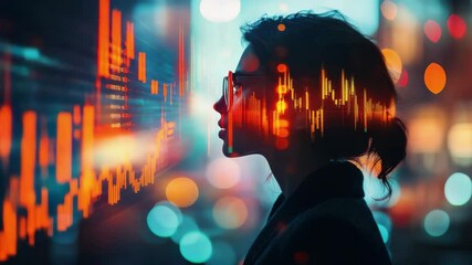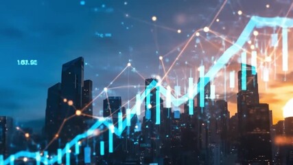 Abstract Financial Graphs With Blue Light Overlay Videos