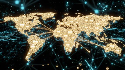Abstract Hearts Overlay On Digital Global Data Background Videos