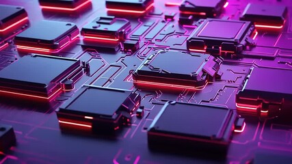 Abstract Microprocessor Connections With Colorful Digital Interface Videos