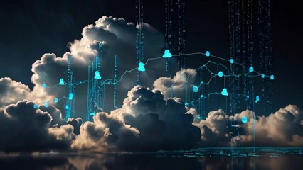 Abstract Networking Connections Over Cloudy Sky Background Videos